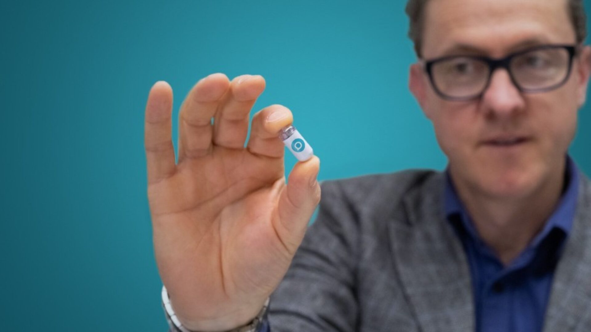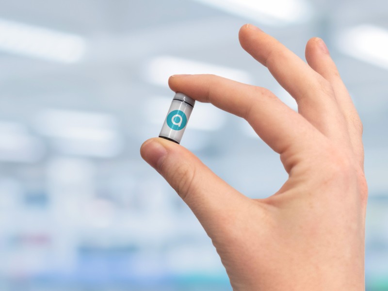Pictured: The Atmo Biosciences single-use gas-sensing capsule up close.