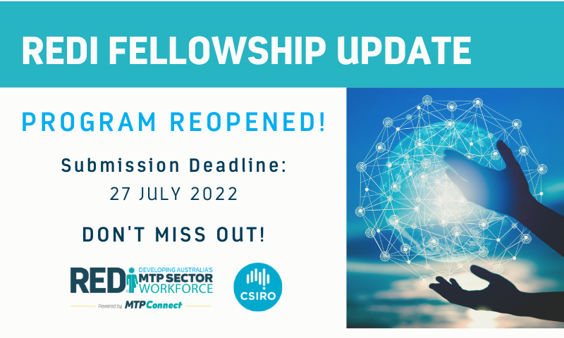 We are thankful to the Australian Government and CSIRO for their vision and commitment to partnering with MTPConnect for this round of the REDI Fellowship program.