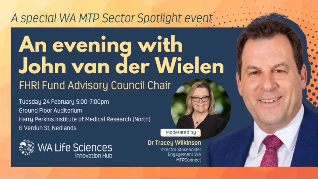 Join the WA Life Science Innovation Hub for a fireside chat John Van Der Wielen, Future Health Research and Innovation (FHRI) Fund Advisory Council Chair.