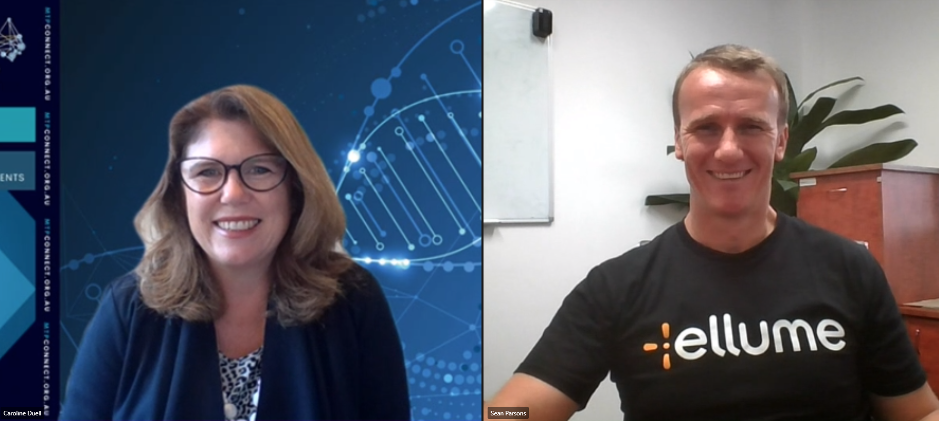 Pictured: MTPConnect’s Director Communications Caroline Duell speaking to Ellume Health’s Founder and CEO Dr Sean Parsons in the virtual podcast studio.