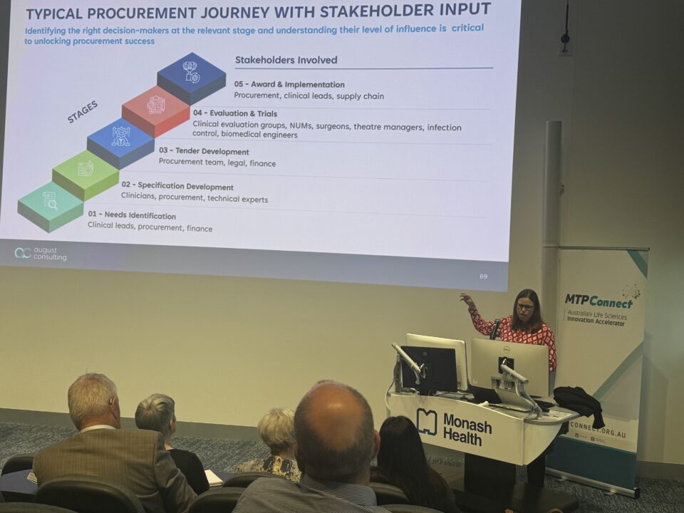 MTPConnect’s Dr Amelia Vom launched the day by sharing the exciting news about the Victorian companies selected to join our 2026 Pathway to Market program. We are looking forward to working with these 7 medtech companies over the next few months to get procurement-ready! Read the announcement here to find out more.