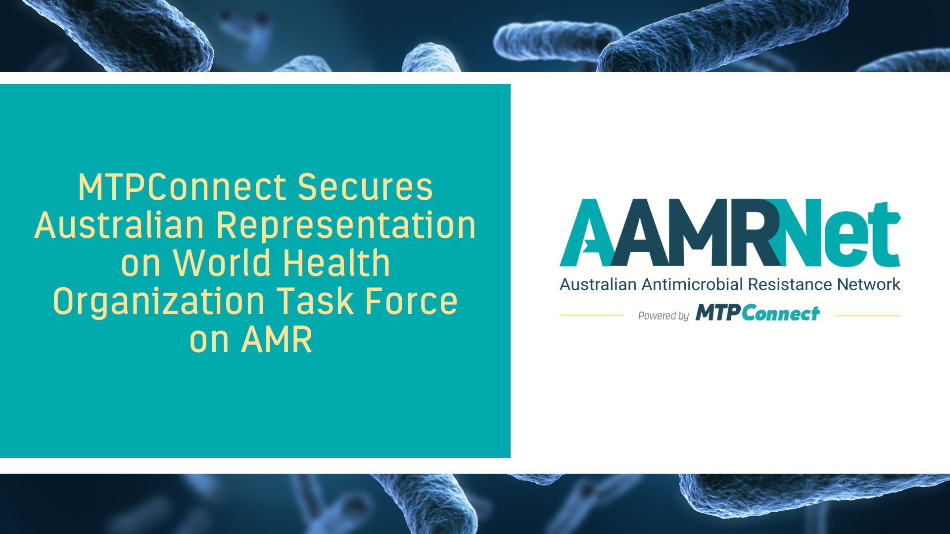 MTPConnect, Australia’s leading independent, non-profit life-sciences innovation accelerator established and operates AAMRNet to provide thought leadership and drive action on AMR in Australia. AAMRNet leverages MTPConnect’s networks, resources and its reputation as an independent and trusted voice for the sector and brings together experts from industry, research, clinicians, patients and government to identify and tackle the challenges of AMR.