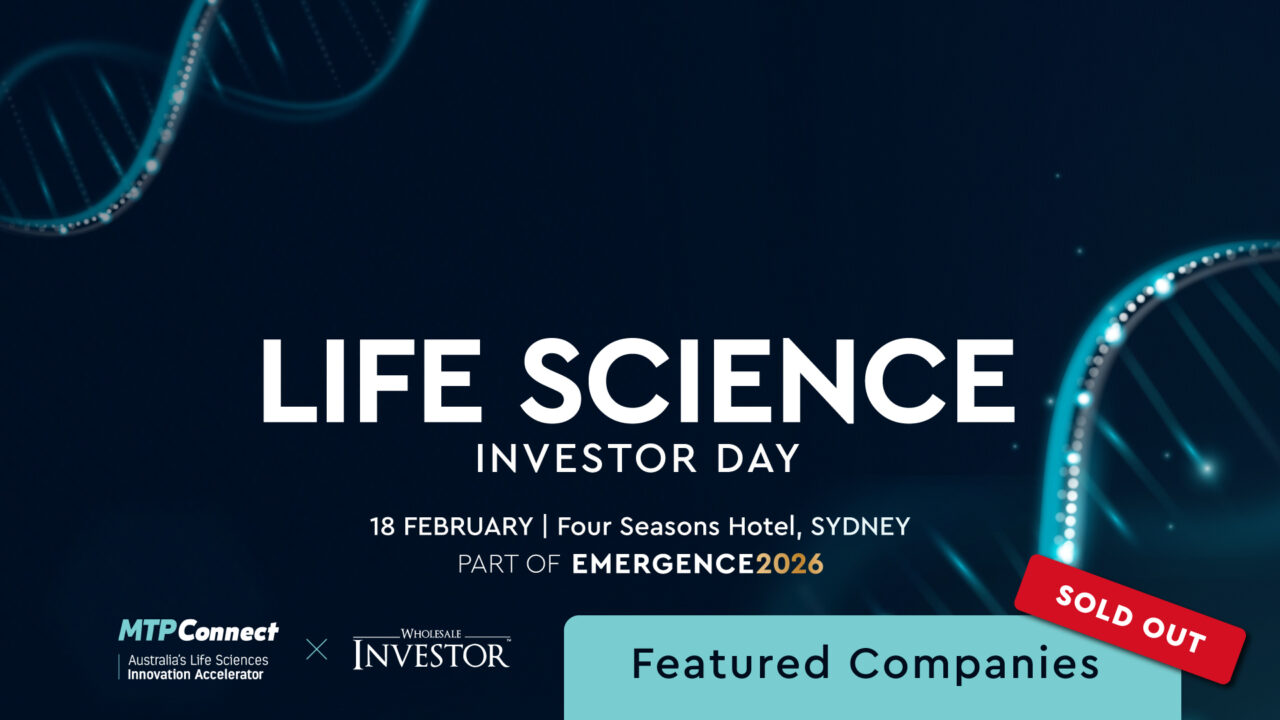 The MTPConnect Investor Ready Program aims to enhance life science companies’ readiness for investment and connecting companies directly with Wholesale Investor’s network of over 45,000 investors.