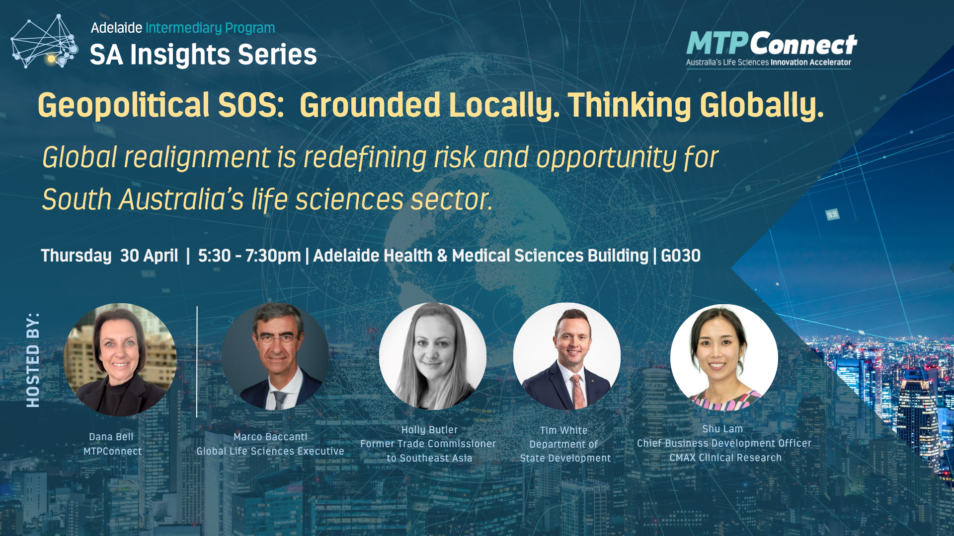 When: Thursday 30 April, 5:30pm-7:30pm ACST