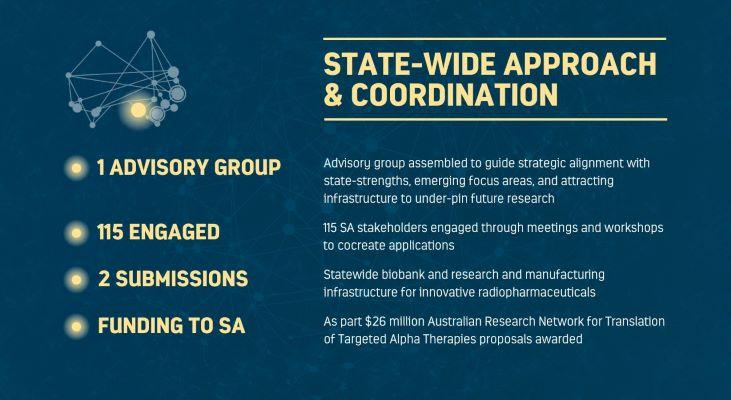AdvanCell was awarded $9.8M MRFF funding as part of the $26M Australian Research Network for Translation of Targeted Alpha Therapies. The amount awarded for investment in South Australia will fund expansion of infrastructure utilised by local network partners including the South Australian Health and Medical Research Institute (SAHMRI), the Molecular Imaging and Therapy Research Unit (MITRU), the Clinical and Research Imaging Centre (CRIC), and the University of South Australia. It is also likely to increase R&D business contracts for the development of new radiopharmaceuticals; already, the application alone has strengthened South Australia’s relationship with key national stakeholders across the nuclear medicine sub-sector.