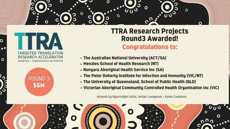 $6 million in funding for new diabetes and cardiovascular disease research projects that address the unmet health and medical needs of Aboriginal and Torres Strait Islander peoples in rural, remote, regional and urban centres.